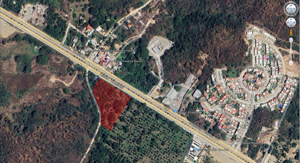Terreno de 1 hectárea de superficie con 110.50 mts de frente al Bulevard Aeropuerto Zihuatanejo. Uso de suelo: Reserva para crecimiento urbano. tambien colinda con calle enla parte posterior del terreno.
